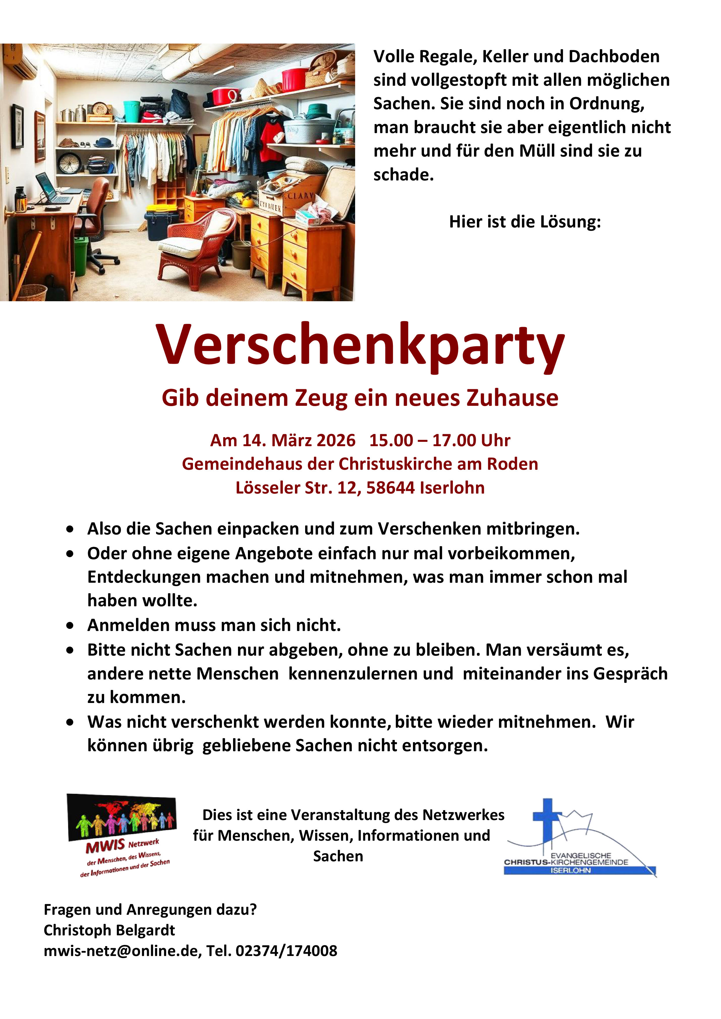 Volle Regale, Keller und Dachboden sind vollgestopft mit allen möglichen Sachen, die man eigentlich nicht mehr benötigt, die aber zu schade für den Müll sind. Hier ist die Lösung: Die Verschenkparty!