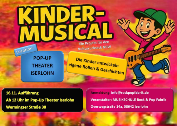 Für Kinder und Jugendliche bis 14 Jahre Veranstalter: Musikschule Rock & Pop Fabrik