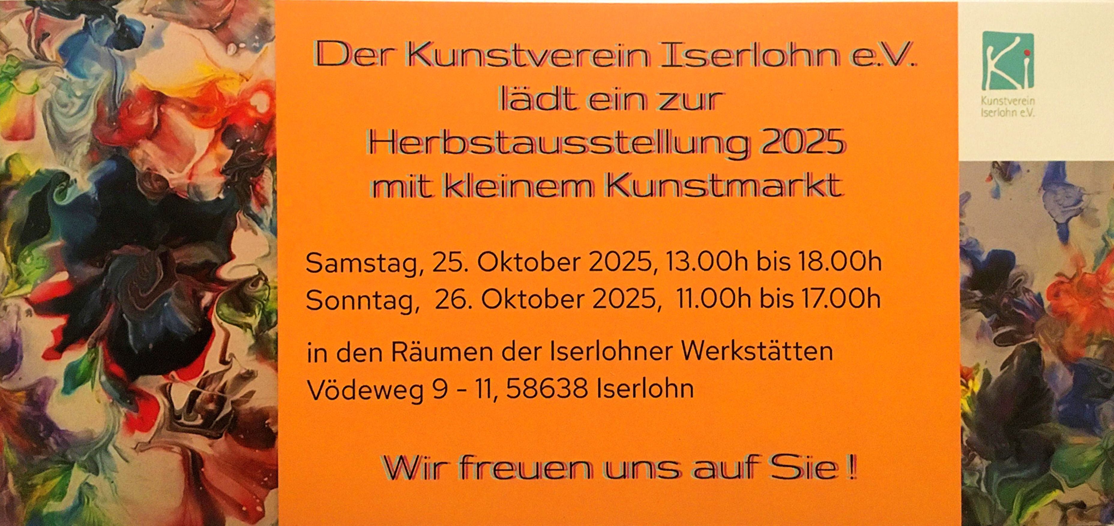 Die Gemeinschaftsausstellung findet am Samstag, 25. Oktober, von 13.00 bis 18.00 Uhr, und Sonntag, 26. Oktober 2025, von 11.00 bis 17.00 Uhr in den Räumen der Iserlohner Werkstätten im Karree 38, Vödeweg 9-11, Iserlohn statt. Sie…